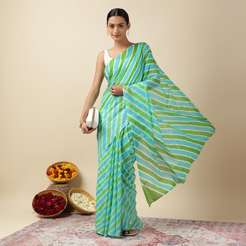 Aqua Green Leheriya Tie-dye Mulmul Cotton saree