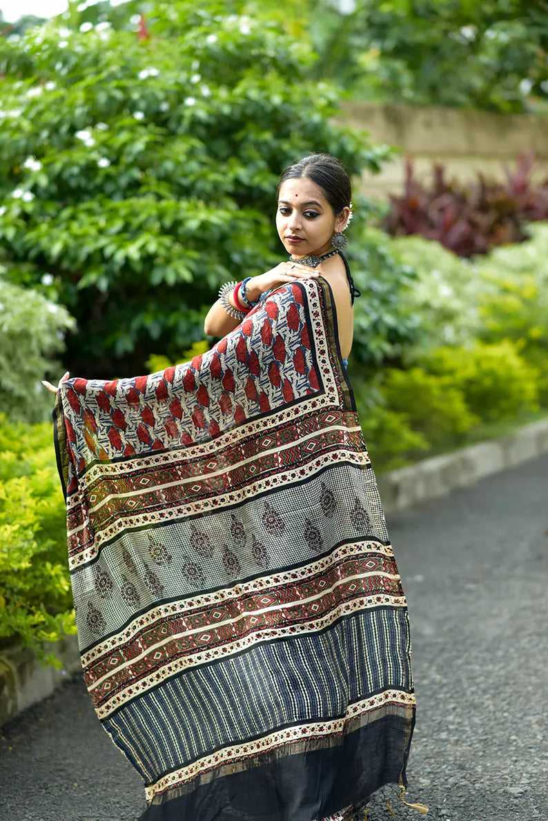 Memory Muse - Hand Block Print Chanderi Silk Bagru Saree