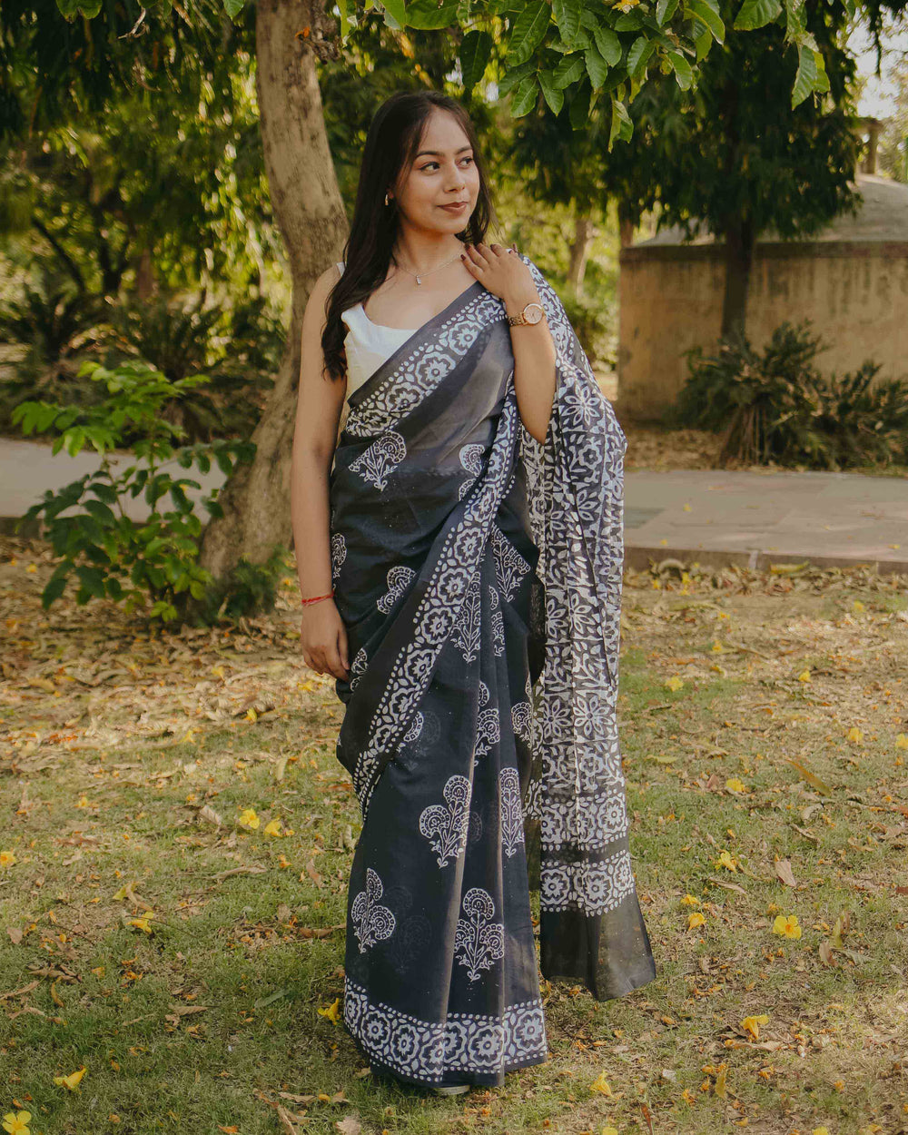 Luna Hand Block Print Mulmul Cotton Saree