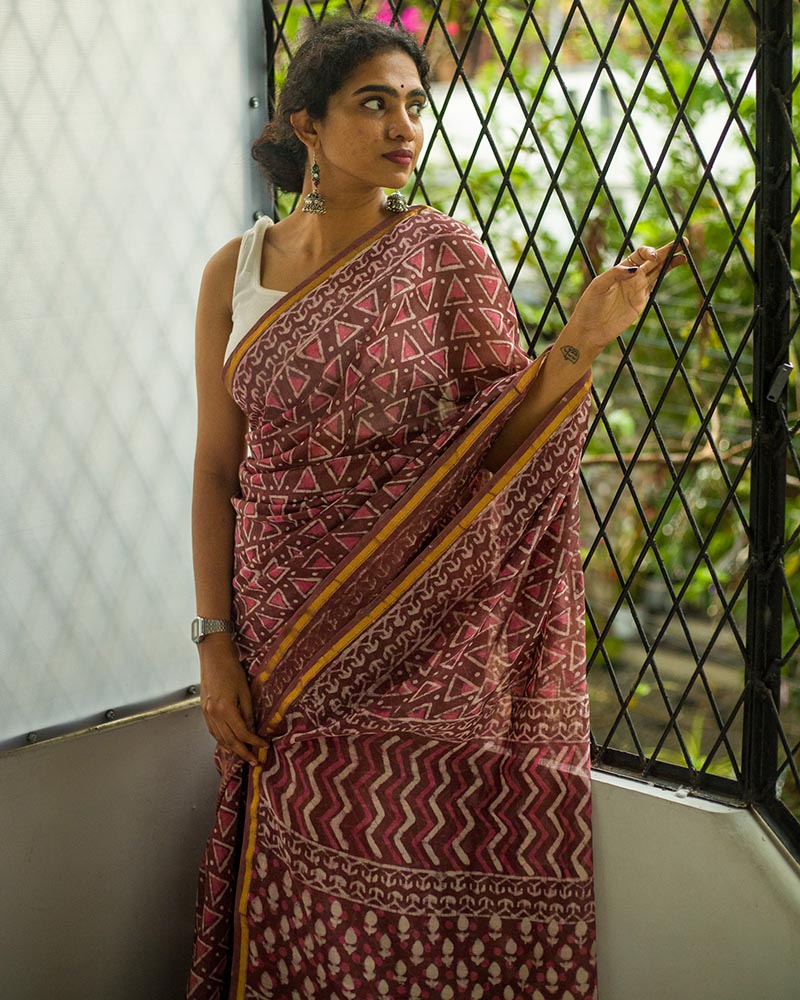 Luna Hand Block Print Mulmul Cotton Saree