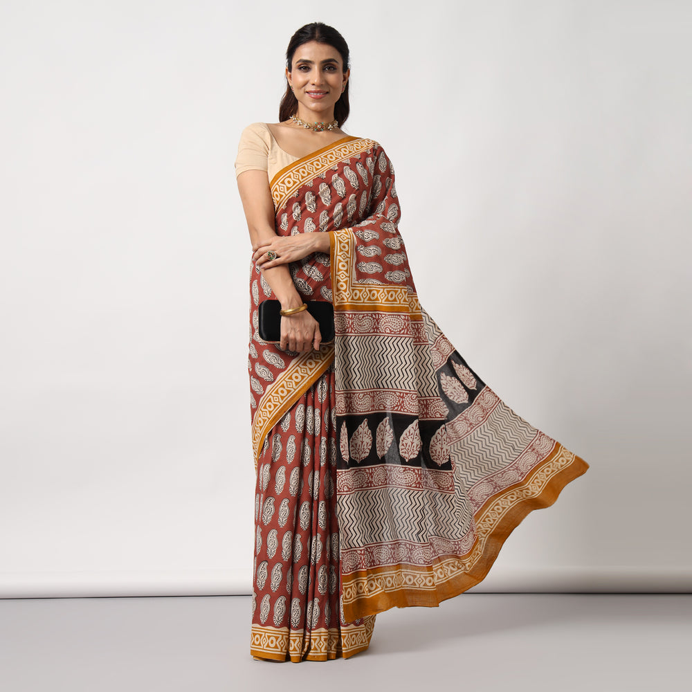 Memory Muse - Hand Block Print Chanderi Silk Bagru Saree