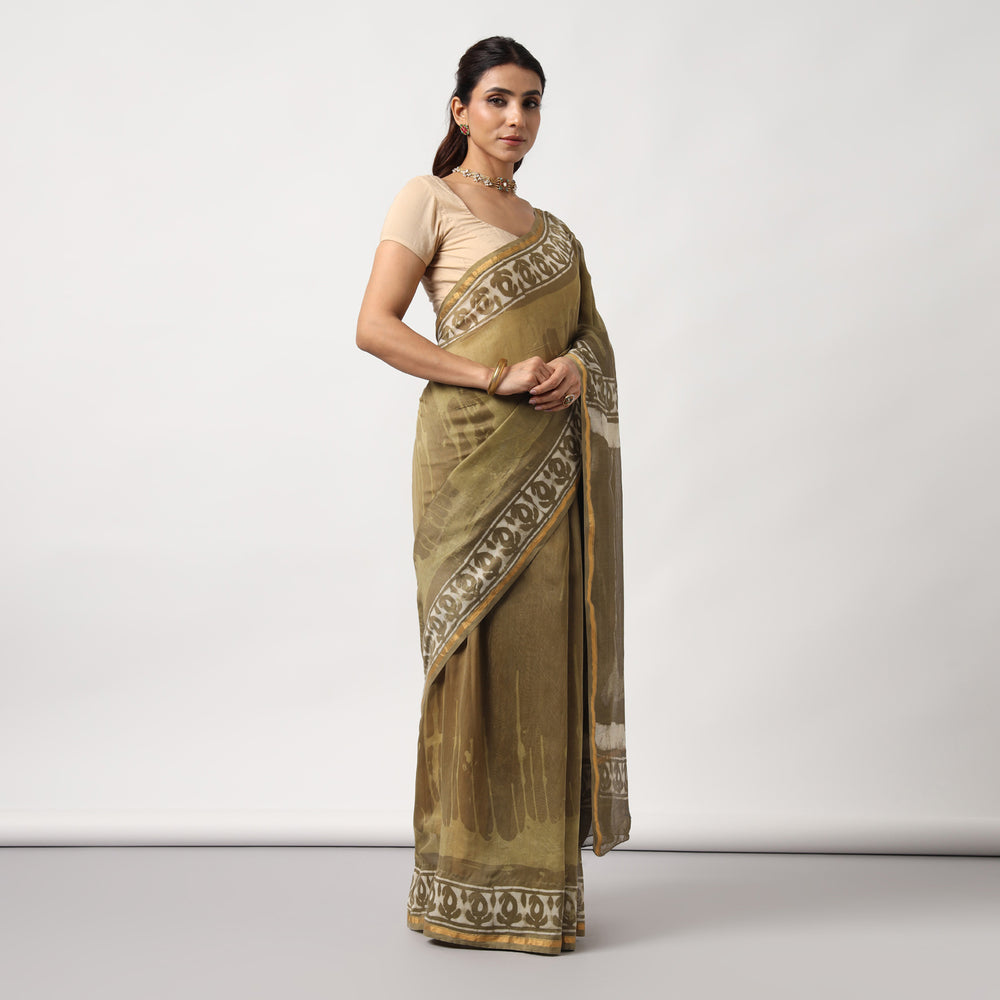 Memory Muse - Hand Block Print Chanderi Silk Bagru Saree