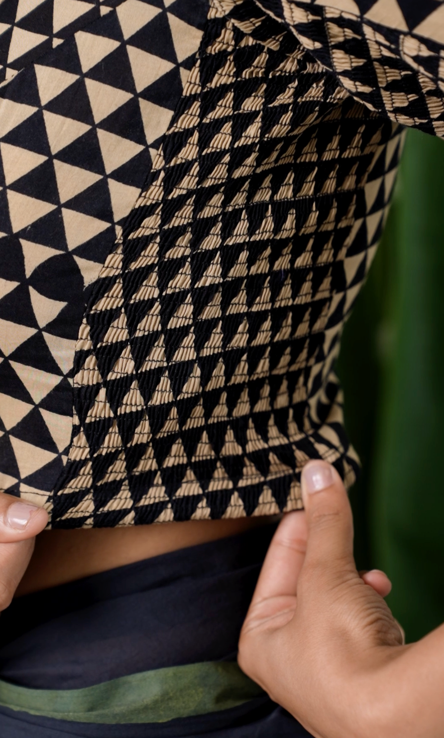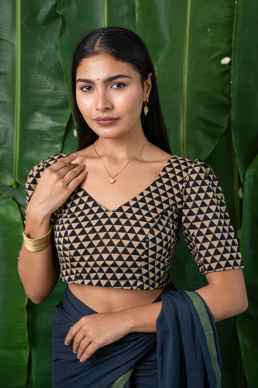Samira blends bold geometric prints with everyday comfort. Designed with CurveFit stretchable side panels, it adapts to your shape for a flawless fit every time. Sleek and versatile, it pairs as beautifully with solid silks as with statement sarees.