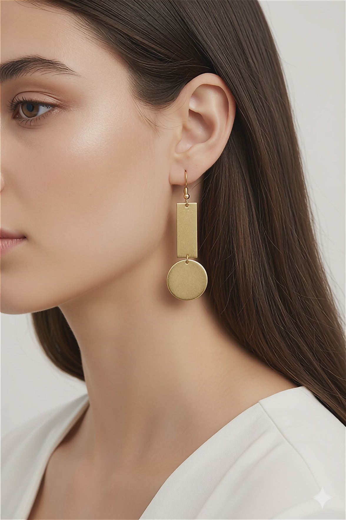 These minimal drop earrings feature a balanced design of clean lines and soft curves, with a sleek bar and a smooth circular accent. Made from anti-tarnish brass and gold-plated for durability, these demi-fine jewelry pieces offer an easy, modern silhouette that’s perfect for daily office wear. Lightweight and comfortable, they effortlessly elevate both casual outfits and more refined looks, making them a versatile addition to your everyday jewelry collection.