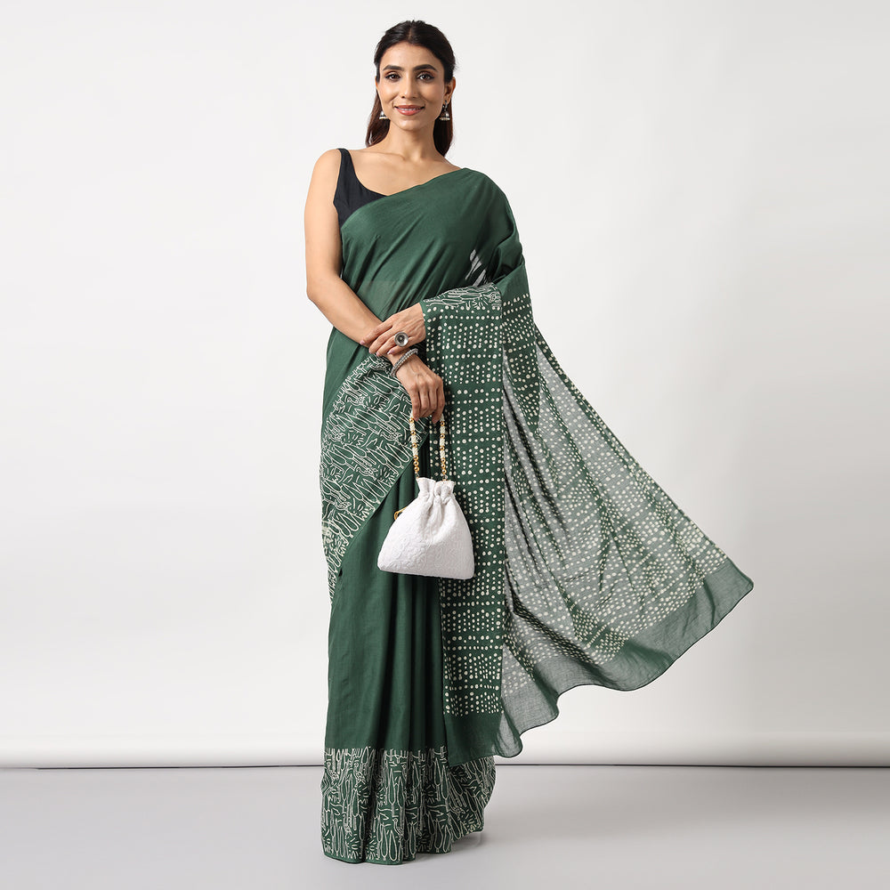 Indigo Spells - Dabu Hand Block Print Mulmul Cotton Bagru Saree