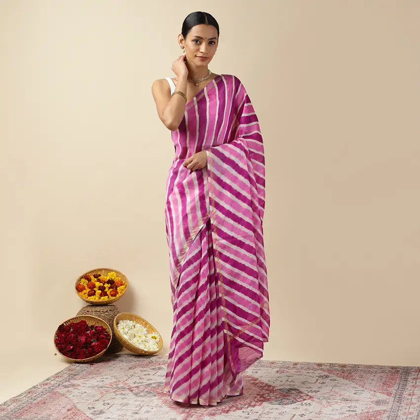Purple Twist Leheriya Tie-dye Chanderi Silk saree