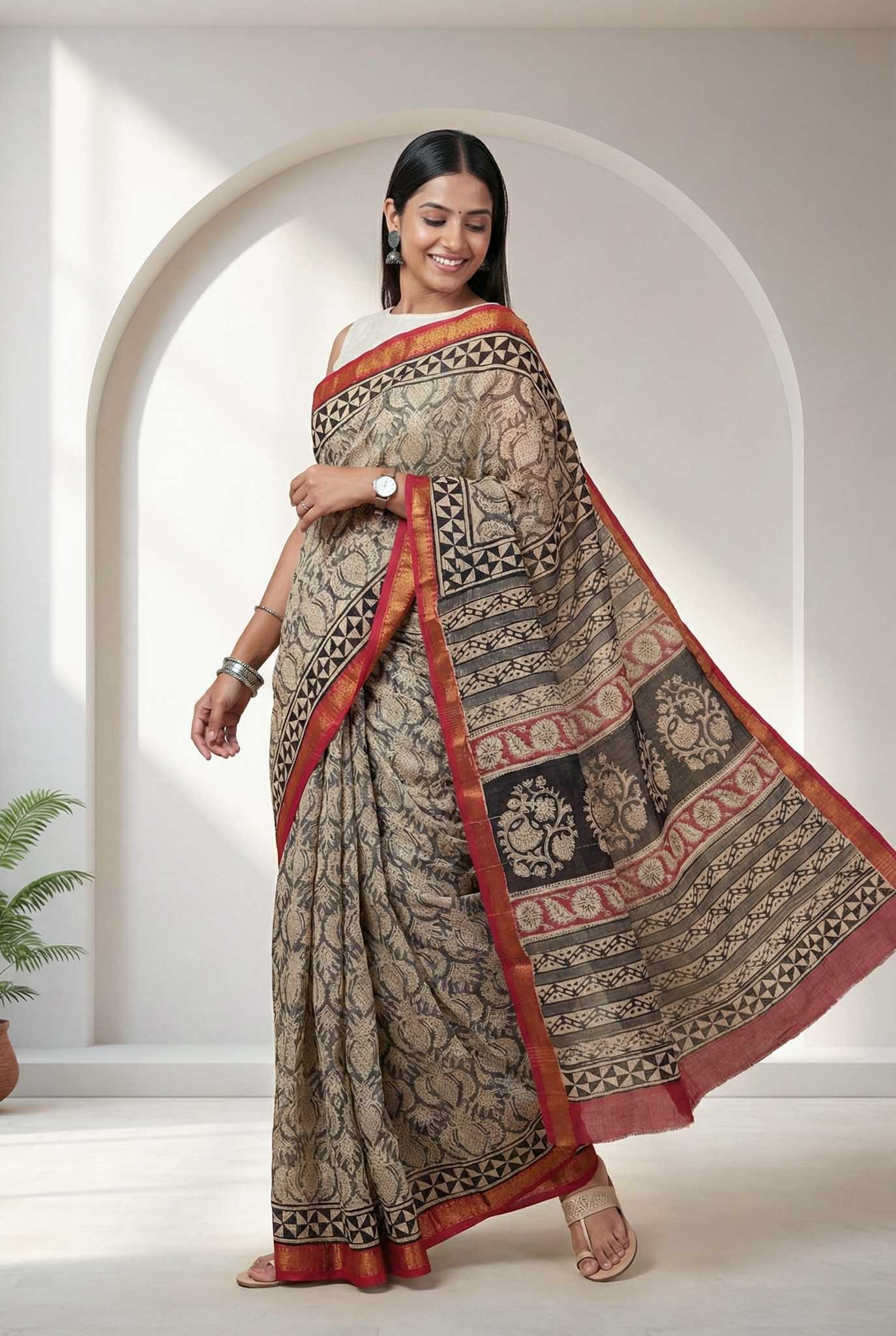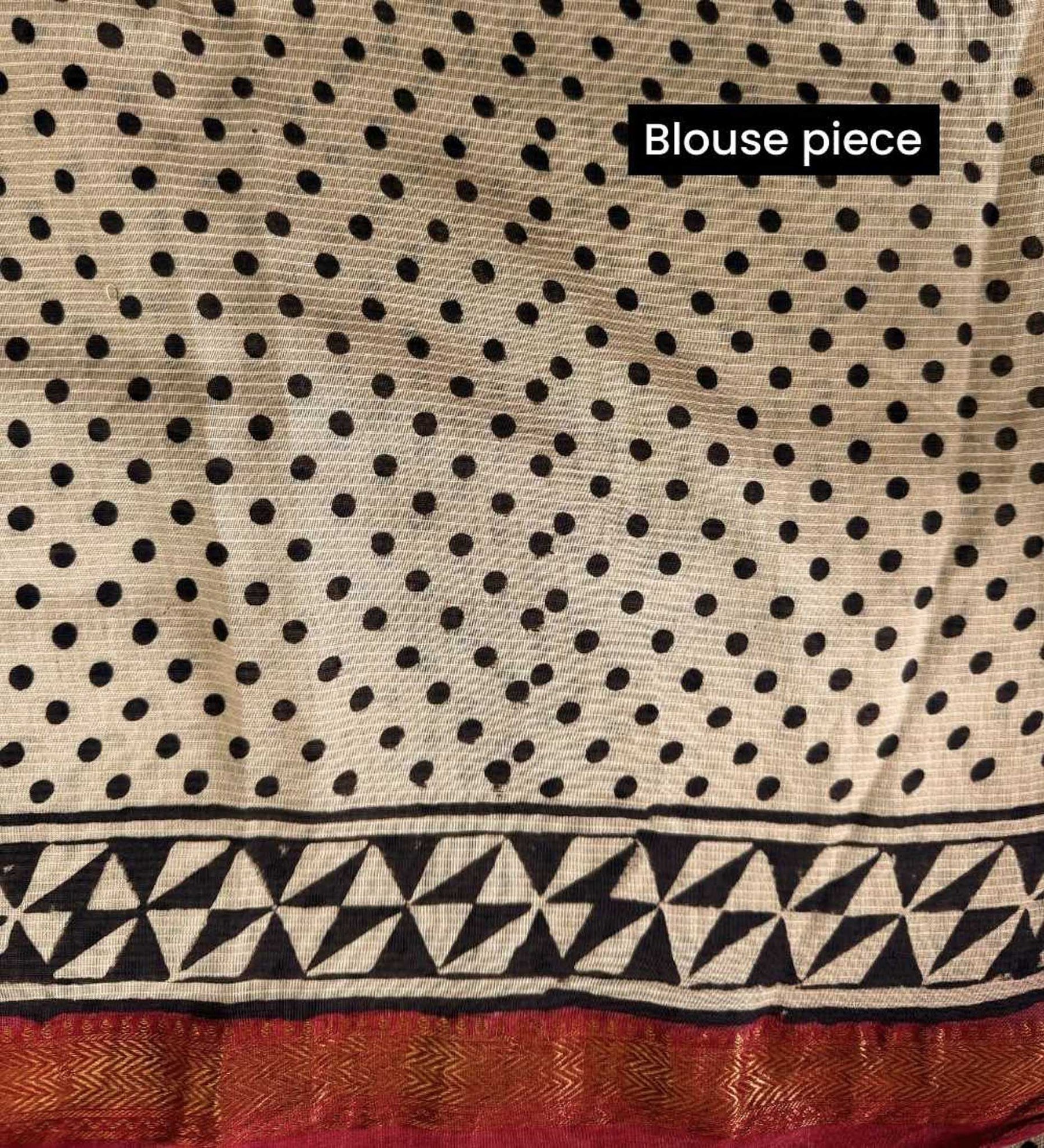 Shaila - Hand Block Print Silk Cotton Maheshwari Saree
