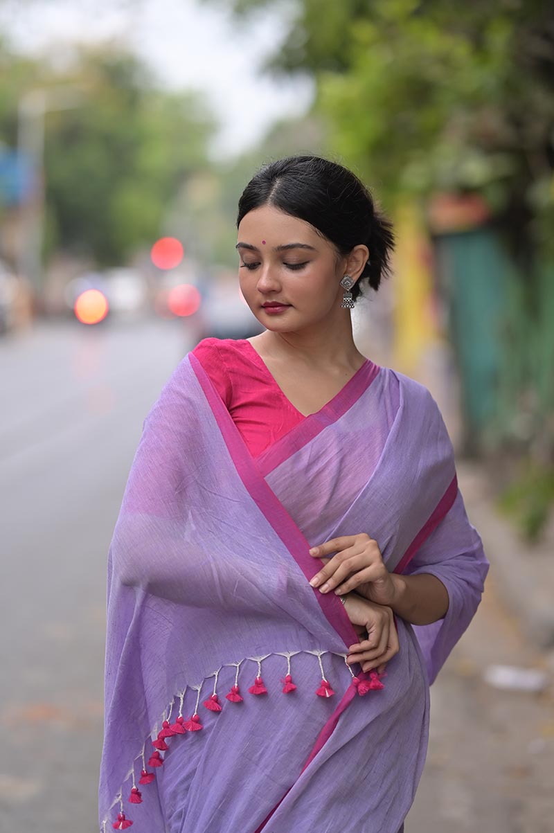 Soft Lavender Handwoven Mulmul Cotton Saree