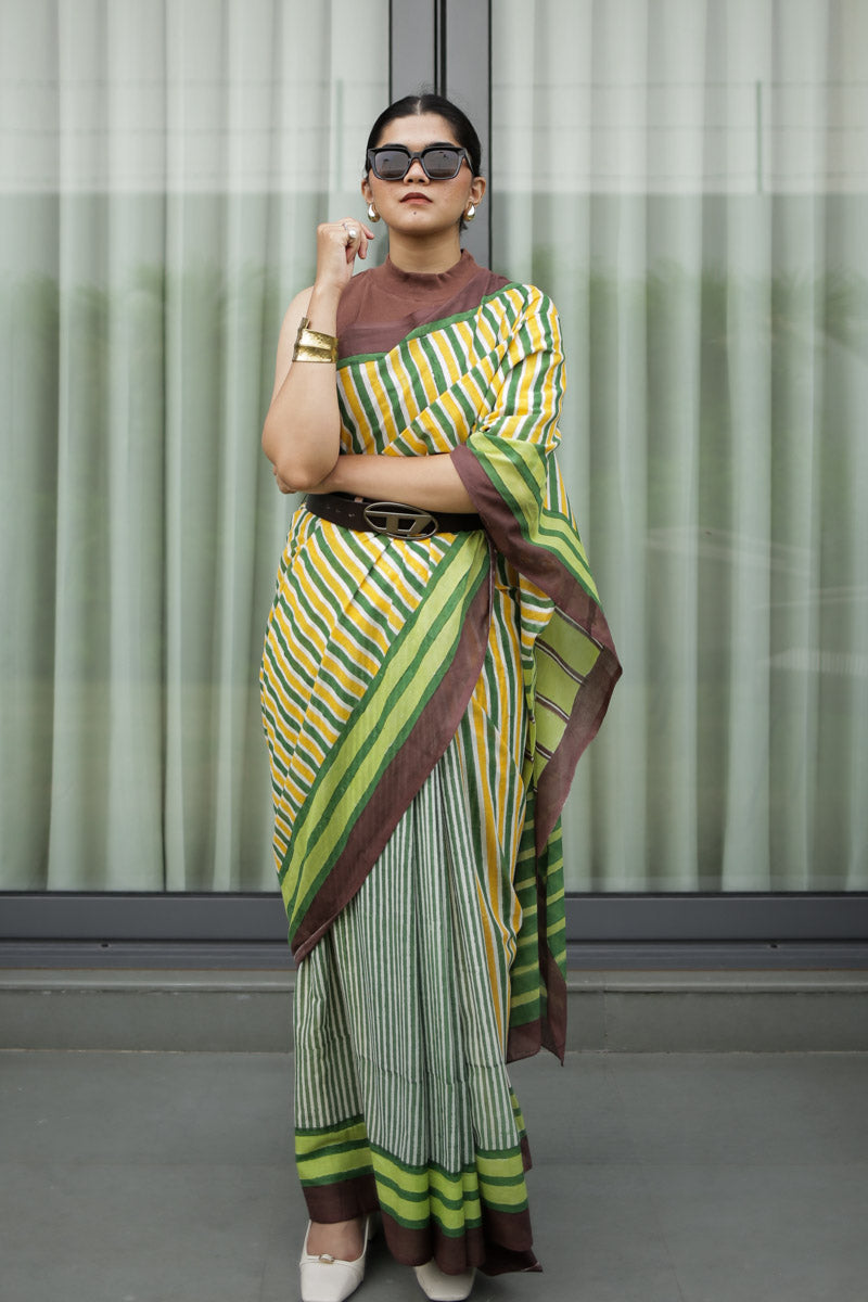 My second purchase from Moora β¦ loved the way they pack. Unboxing itself is an experience in itself. The fabric, the color , the print is fabulous. Love the way the sari is finished with fall, folded and packed carefully.