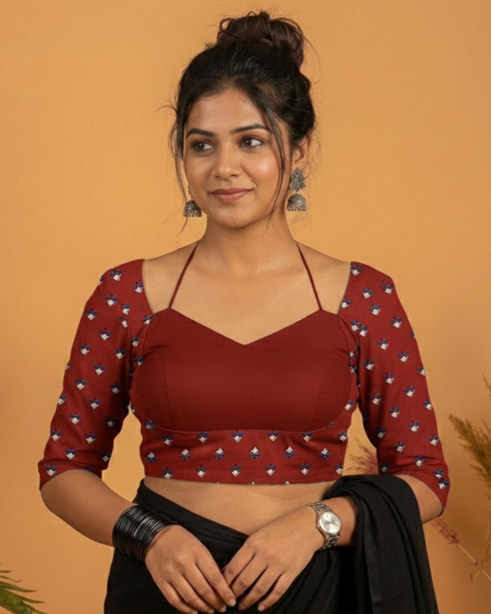 Designed to flatter with its sleek silhouette, it transitions seamlessly from everyday drapes to evening styling. Whether teamed with a traditional saree or worn as a modern crop top, this blouse brings sophistication, confidence, and a touch of drama to your wardrobe.